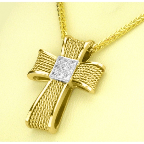 Ένας υπέροχος Δίχρωμος Σταυρός 14 Κ του γνωστού οίκου Πανούση. Συνοδεύεται από Χρυσή Αλυσίδα 14 Κ.