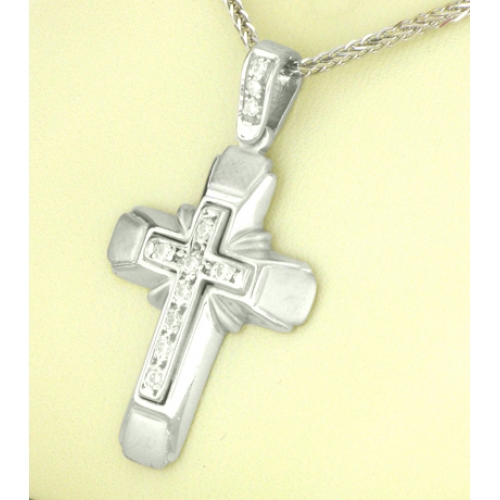 Ένας υπέροχος Λευκόχρυσος Σταυρός 14Κ του γνωστού οίκου Πανούση.Συνοδεύεται από Λευκή Αλυσίδα 14Κ